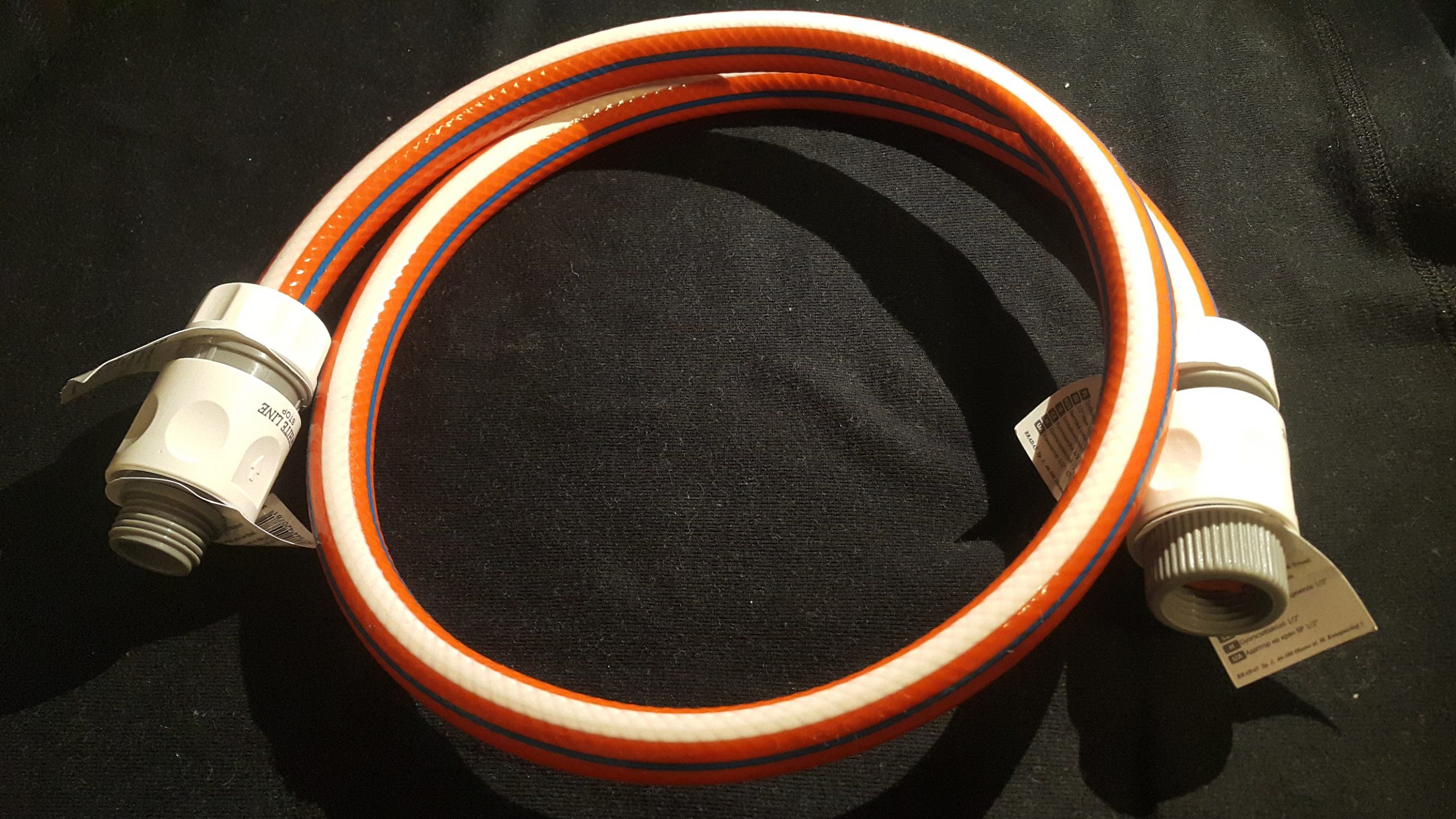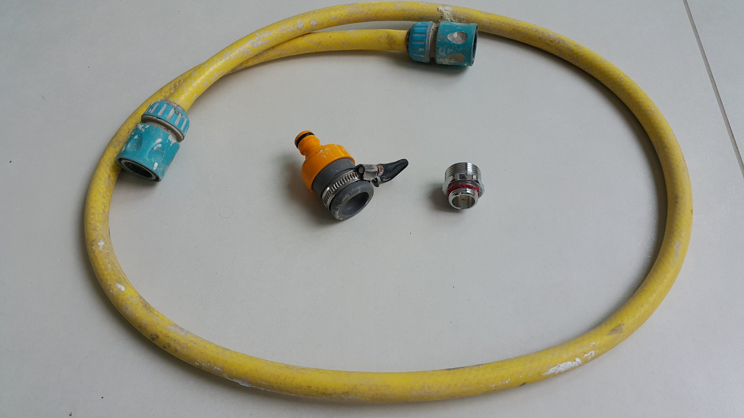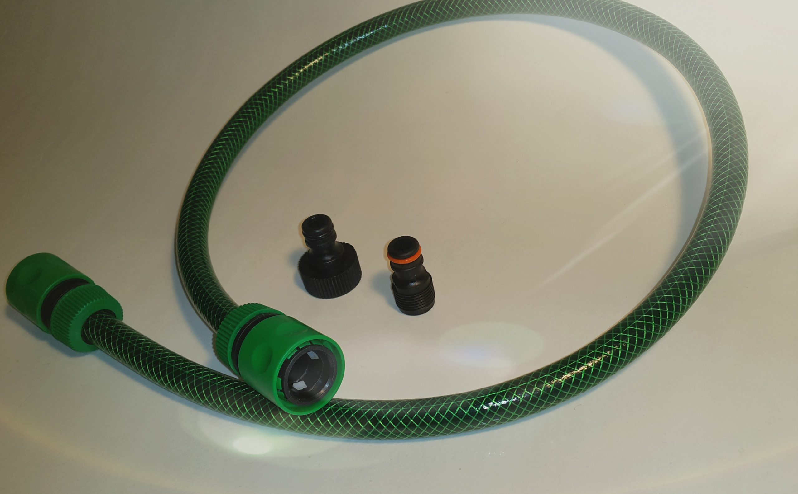 Składa się on z metrowej długości węża o średnicy 1/2″, dwóch szybko złączek w tym jednej typu „stop”, męskiej złączki do podłączenia do kranu ogrodowego i jednej do podłączenia do węża słuchawki prysznicowej (3/4″)